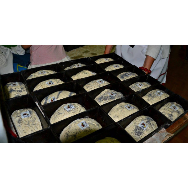 - wygniatania i wyrastania ciasta, dekoracja chleba nasionami oraz rozpalenie pieca chlebowego,