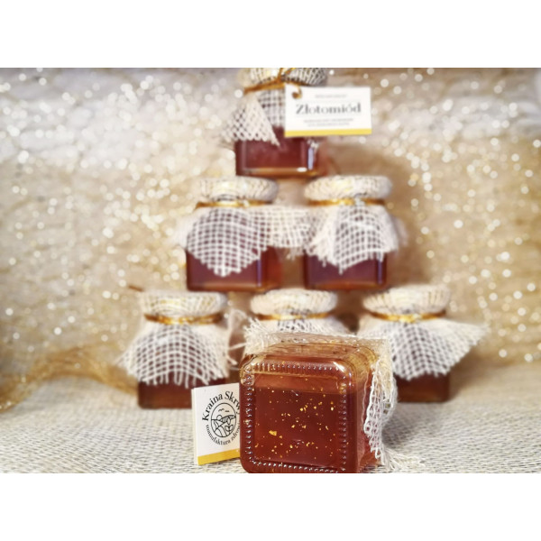 Złotomiód otrzymujecie Państwo w gustownim, szklanym słoiczku, tak by cieszył nie tylko podniebienie, ale i oczy.