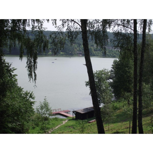 Główną osią komunikacyjną "na stałym lądzie" jest ciąg schodów biegnących w dół zbocza i przecinających się z biegnącymi równolegle do zbocza ścieżkami, skąd rozciągają się malownicze widoki na jezioro Górznieńskie.